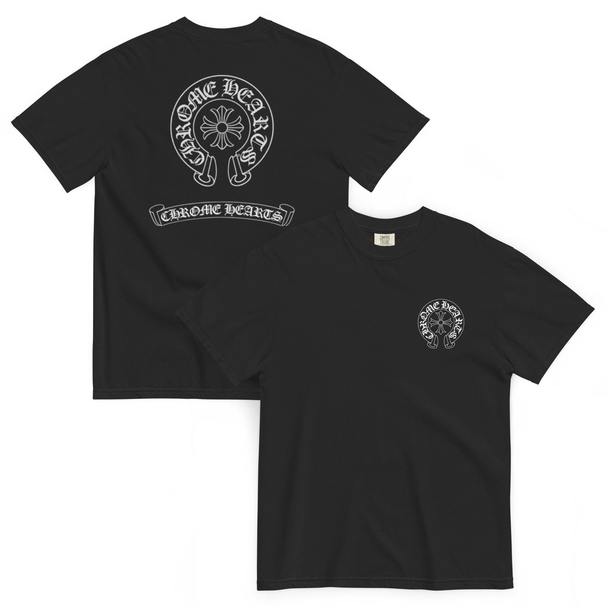 Iconic Back Graphic: Features Chrome Hearts’ signature gothic script and cross emblem in a crisp white print — instantly recognizable and effortlessly cool.